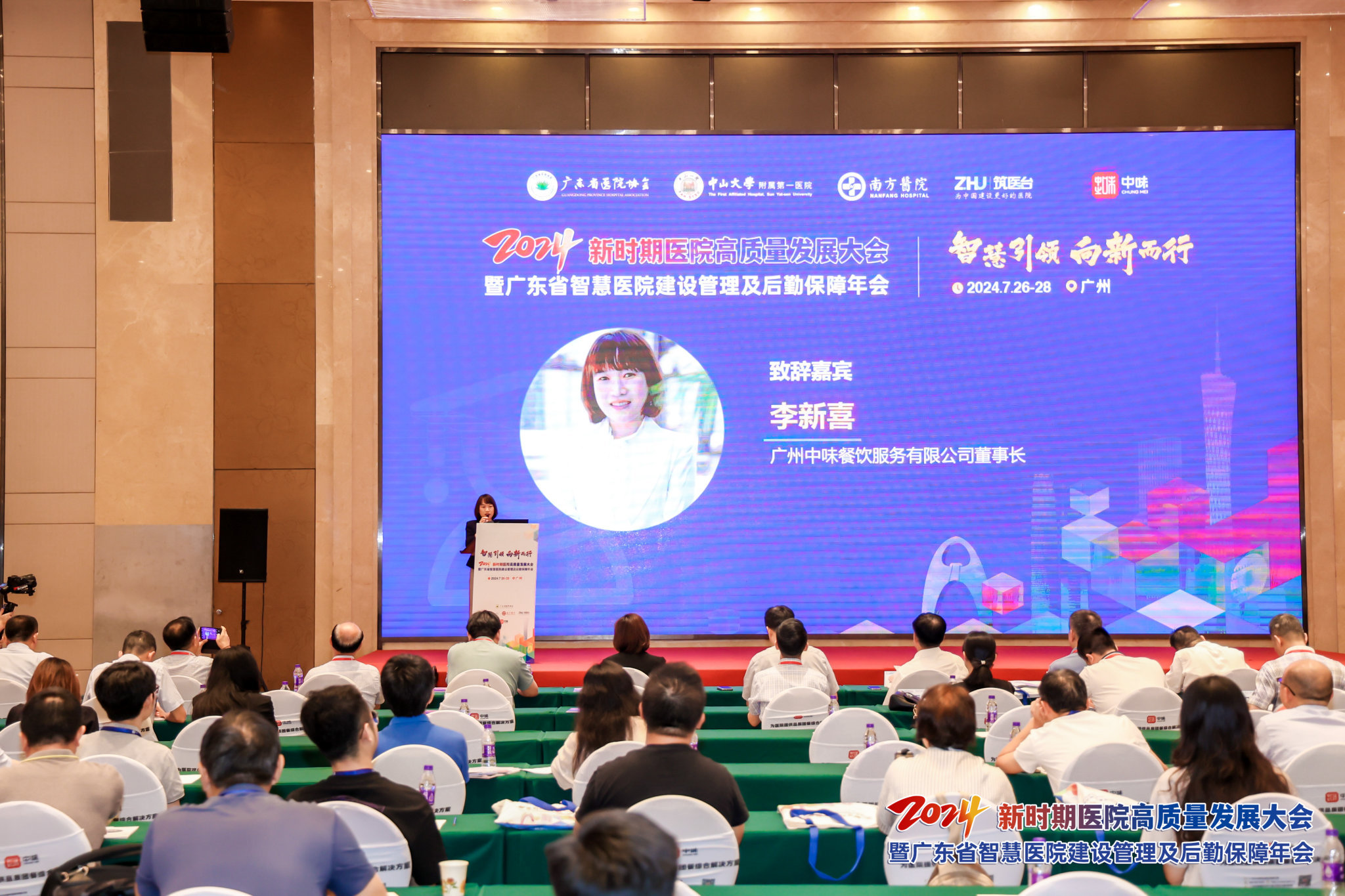 2024年7月26-28日,以“智慧引領·向新而行”為主題的2024新時期醫院高質量發展大會暨廣東省智慧醫院建設管理及后勤保障年會在廣州舉行,中味作為擁有豐富的醫院餐飲服務經驗的品質團餐綜合解決方案供應商受邀參與本次大會,與來自廣東省各地的醫院后勤管理者以及管理服務商代表分享醫院后勤服務品質化升級的經驗。?